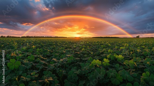 Obraz premium Rainbow Arcing Over Sunset Field Of Clover