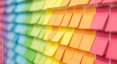© MonkeyZ, Fototapeta premium Rainbow Array A Vibrant Mosaic of Colorful Sticky Notes Creating a Spectrum Display