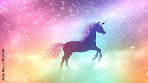© Nadim DnC, Fototapeta premium Rainbow background with winged unicorn