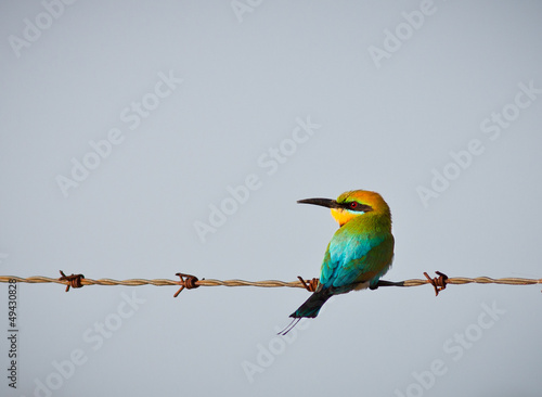 Obraz premium Rainbow bee-eater perched on wire