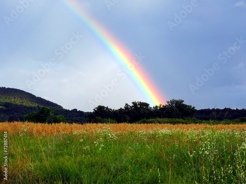 © ommbeu, Naklejka premium Rainbow behind the wheat field