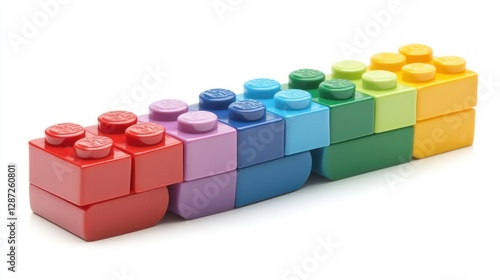 © Almahyra, Obraz premium Rainbow blocks building, studio, white background, toy