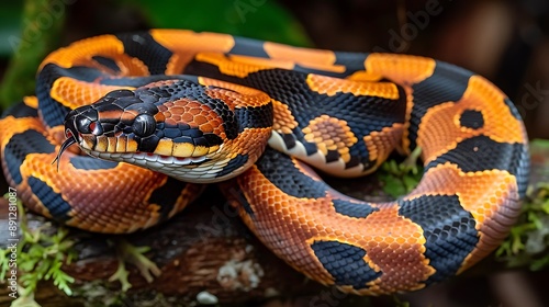 Obraz premium Rainbow Boa Epicrates cenchria coiled around a branch in the Amazon known...
