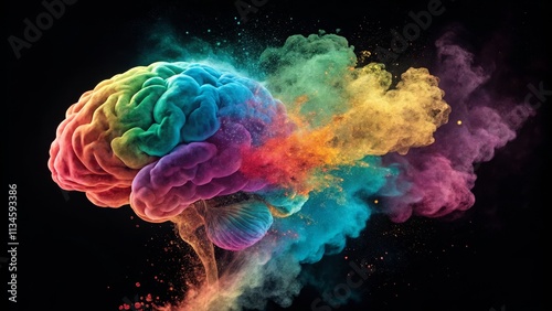 Obraz premium Rainbow Brain Explosion A Colorful Abstract Composition, Brain, Creativity,...
