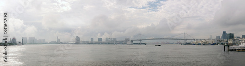 Obraz premium Rainbow Bridge and Tokyo bay panorama with Odaiba island