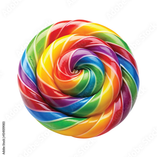 © Yuiziee, Fototapeta premium Rainbow Candy Twist: A single twisted rainbow hard candy, high resolution, PNG file