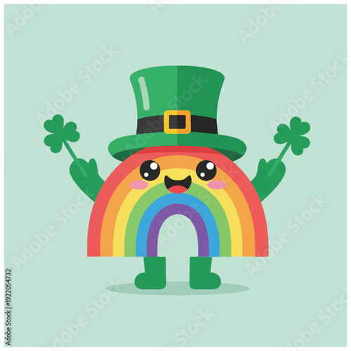 Fototapeta premium Rainbow Character Wearing Green Top Hat.