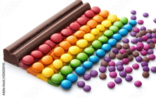 © Sergey Fedchenko, Naklejka premium rainbow Chocolate candy isolated on white background