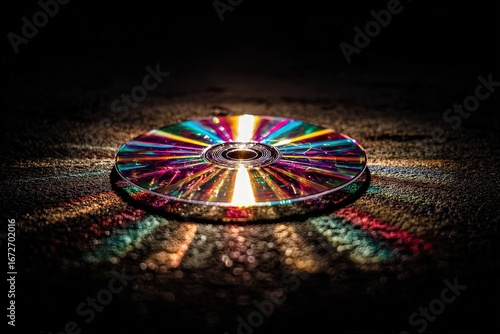 Obraz premium Rainbow Colored CD Reflection on Dark Surface