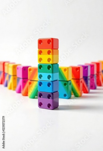 © Katherina, Obraz premium Rainbow-colored dominoes in a symmetrical arrangement creating a sense of balance and order, symmetry, multicolored alignment , artistic composition