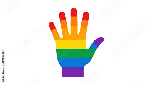 © Bambang, Obraz premium Rainbow-colored hand on white background (2)