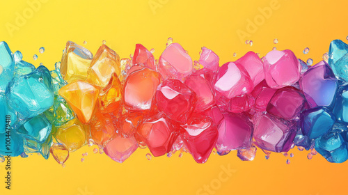Fototapeta premium Rainbow-colored ice cubes on a yellow background.