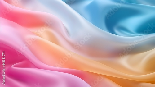 Fototapeta premium Rainbow colored organza and silk background texture. Wavy folded bright organza, satin fabric.
