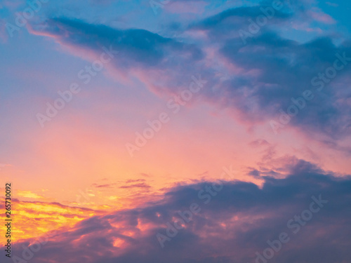 © Supawit, Obraz premium Rainbow colorful sky and clouds. Abstract pastel beautiful landscape at sunset.