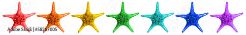 © Dmitry Zimin, Naklejka premium Rainbow colors set of beautiful starfish isolated on white