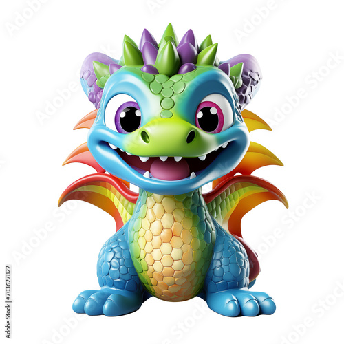 © whannsweet, Obraz premium Rainbow dragon cartoon 3D model isolated
