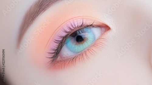 Obraz premium Rainbow Eye Makeup Art Subtle rainbow eyeshadow blended seamlessly on the eyelid, soft and ethereal, suitable for a natural makeup look