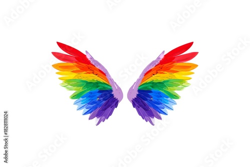 Fototapeta premium Rainbow Feather Wings Isolated on White Background
