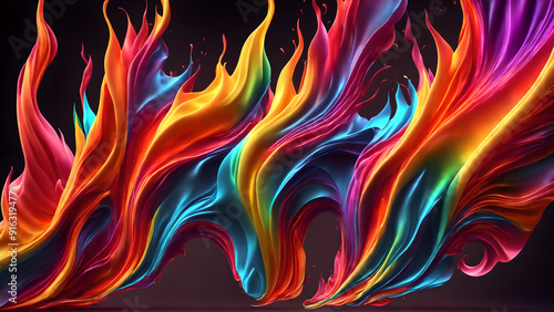 © Beurit Studio, Obraz premium Rainbow Flames Dance Colorful background 3d wallpaper