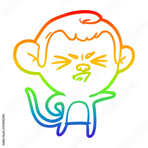 Fototapeta premium rainbow gradient line drawing cartoon annoyed monkey