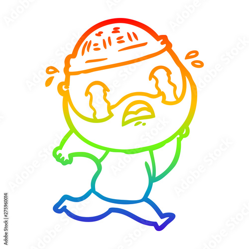 Fototapeta premium rainbow gradient line drawing cartoon bearded man crying
