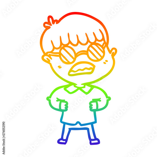 Obraz premium rainbow gradient line drawing cartoon boy wearing spectacles