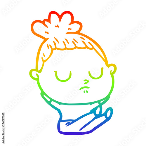 Fototapeta premium rainbow gradient line drawing cartoon calm woman