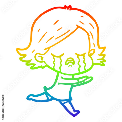 © lineartestpilot, Fototapeta premium rainbow gradient line drawing cartoon girl crying