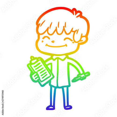 Obraz premium rainbow gradient line drawing cartoon happy boy