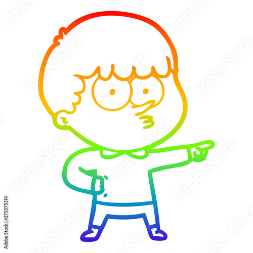 Obraz premium rainbow gradient line drawing cartoon pointing boy