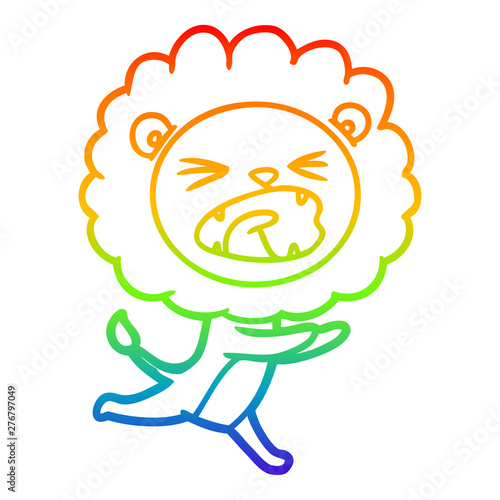 Obraz premium rainbow gradient line drawing cartoon running lion