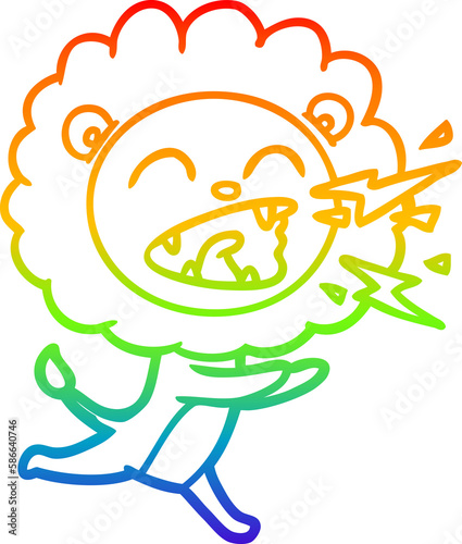 Obraz premium rainbow gradient line drawing cartoon running lion