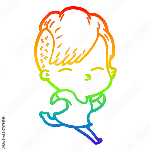 © lineartestpilot, Fototapeta premium rainbow gradient line drawing cartoon squinting girl running