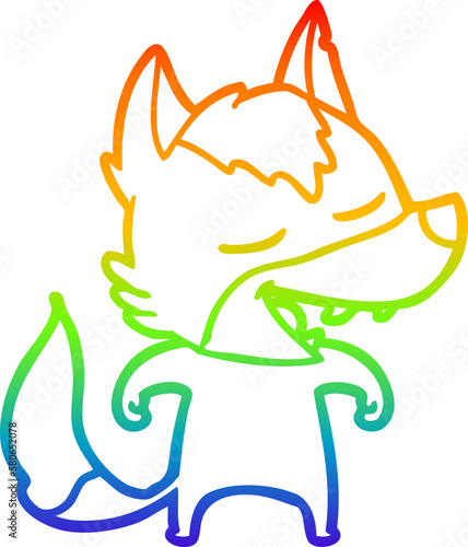 Obraz premium rainbow gradient line drawing cartoon wolf laughing