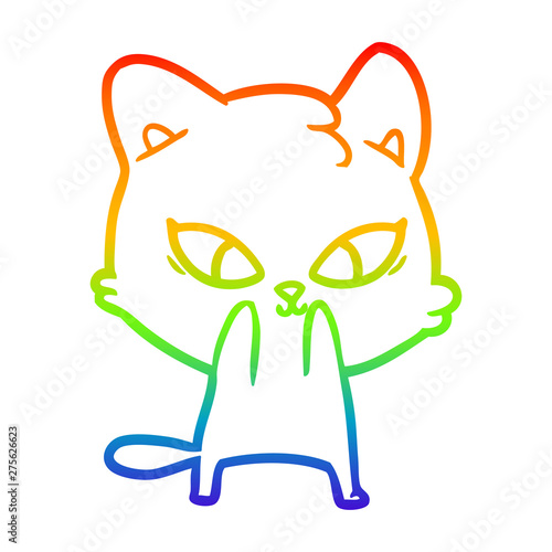 Fototapeta premium rainbow gradient line drawing cute cartoon cat