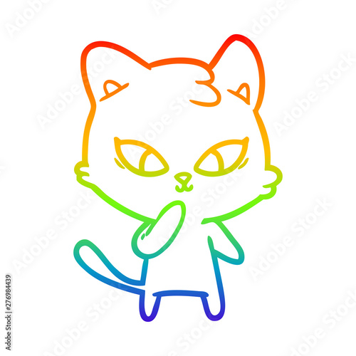 Fototapeta premium rainbow gradient line drawing cute cartoon cat