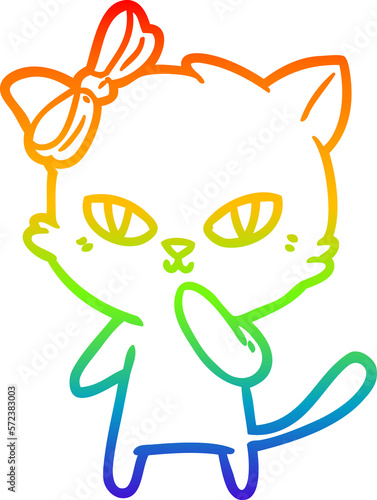 Obraz premium rainbow gradient line drawing cute cartoon cat