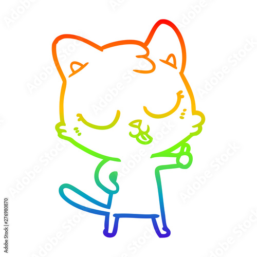 Fototapeta premium rainbow gradient line drawing happy cartoon cat
