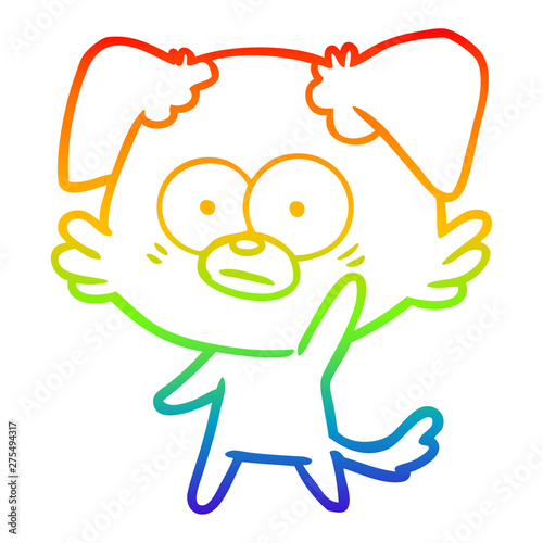 Fototapeta premium rainbow gradient line drawing nervous dog cartoon waving