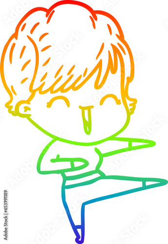 Obraz premium rainbow gradient line drawing of a cartoon laughing woman