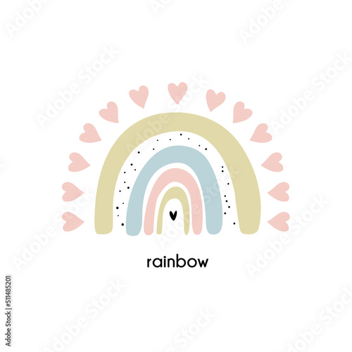 © YUSI_DESIGN, Fototapeta premium Rainbow. Hand drawn vector. Postcard design. Print for clothes, printing on fabric, gift wrapping, wallpaper. Cute design. Case print. Kids poster.