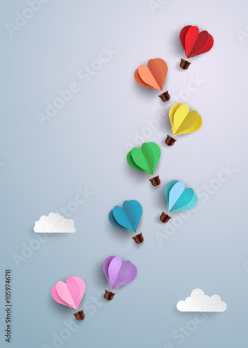 © kengmerry, Fototapeta premium Rainbow Heart Balloons in Vertical Flight