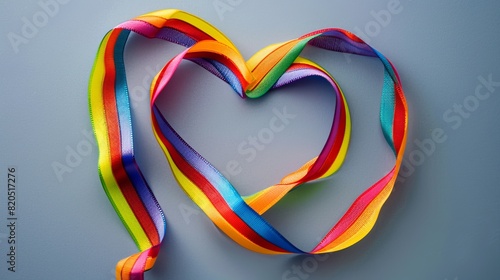 Fototapeta premium Rainbow heart made of ribbons, ideal for LGBTQ pride events, celebrations, and social media posts promoting diversity, inclusion, and equality