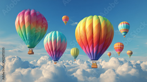 © khurram , Obraz premium Rainbow Hot Air Balloons Soaring Above Clouds