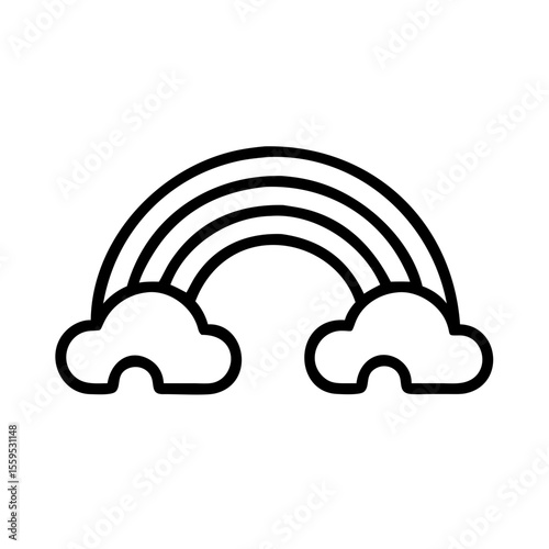 Fototapeta premium Rainbow icon with clouds in simple line art style