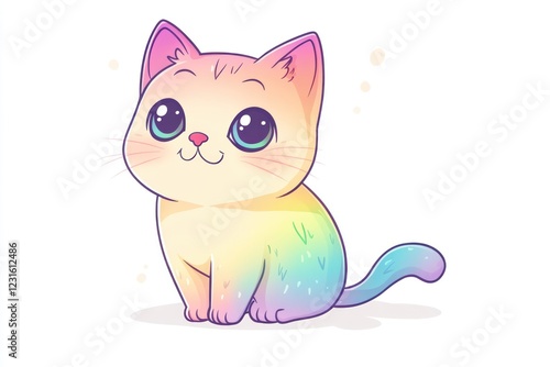 © Zeva, Fototapeta premium Rainbow kitten sitting, pastel background, cute pet, children's illustration