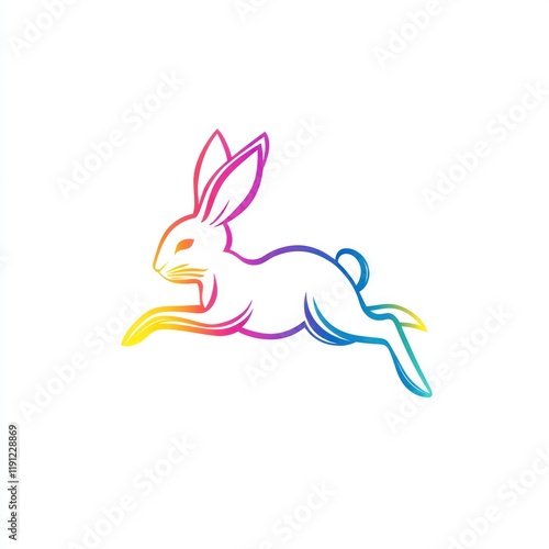 Obraz premium Rainbow leaping rabbit logo design, white background, mascot