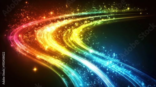 Fototapeta premium Rainbow Light Trails Across Dark Space