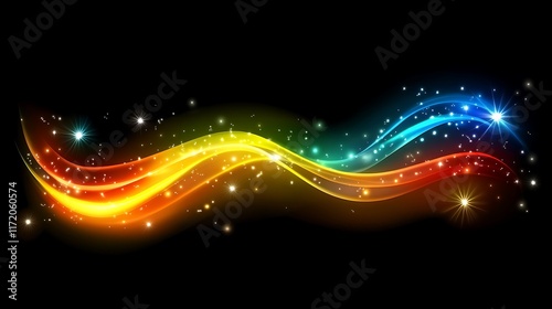 Obraz premium Rainbow Light Waves Sparkle Across Dark Background