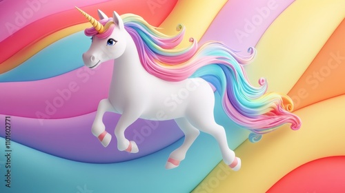 © Penatic Studio, Fototapeta premium Rainbow Mane Unicorn Soaring Over Pastel Waves